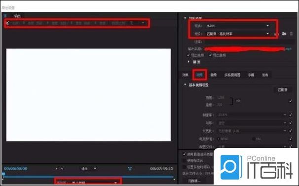 2.主要修改设置是红圈。目前主流是用H.264编码导出MP4文件。各方面都很优秀,可以百度搜索。首先,在右边的格式中选择H.264。