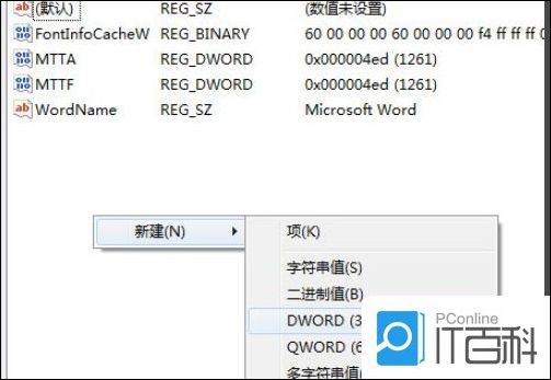 6、然后鼠标右键点击空白处,出现一个新建,选择DWORD(32-位)值(D)