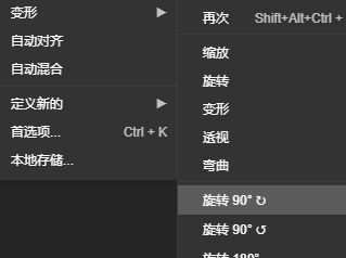 选择复制的噪波层,从菜单栏中选择“编辑”选项,然后从下拉列表中依次运行“平移-顺时针旋转90度”命令。