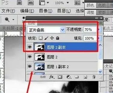 8.然后按“Ctrl J”快捷键继续复制图层,将图层模式设置为“正反”并将图层不透明度设置为70%,水墨画的效果就出来了。