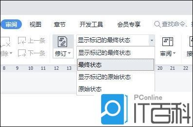 如果修订内容没显示,那你可以点击上方设置【显示标记的最终状态】即可显示修订记录。