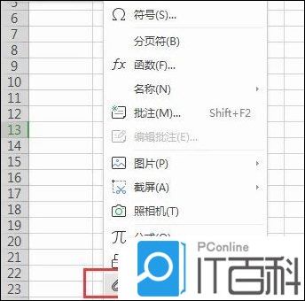 3、弹出的菜单栏一直下拉到最后,找到“插入附件”。