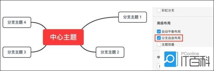 需要在格式>画布>高级布局中打开分支自由布局。打开后,可以修改分支主题的任何位置,调整分支线的长度,甚至在分支主题之间重叠。