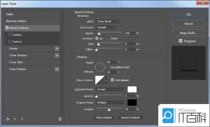 第2步、 使用以下设置将 “斜面”和“浮雕”添加到涂鸦字母 3D 文字效果: