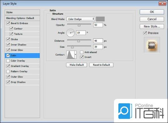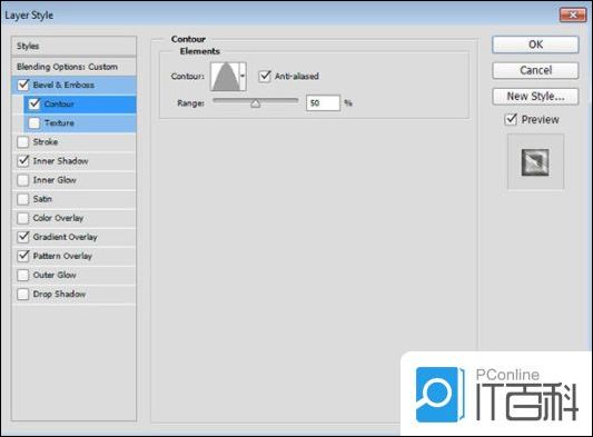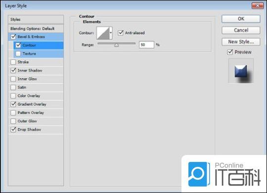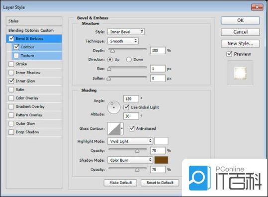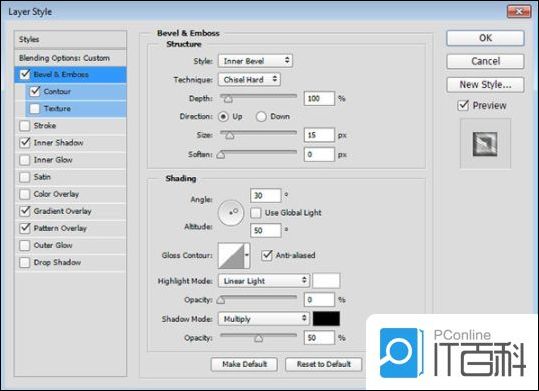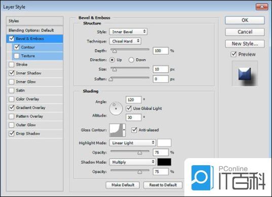 第1步、 使用以下设置添加斜面和浮雕: