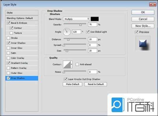 双击背景复制图层以应用以下图层样式: