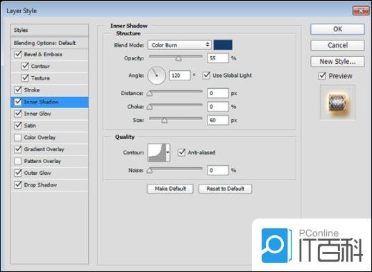 第3步、 使用以下设置添加内部阴影: