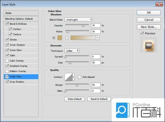 步骤9、 使用以下设置添加外发光: