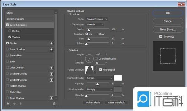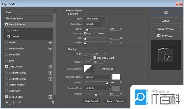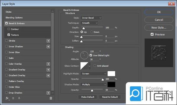 步骤 1、 使用以下设置添加斜面和浮雕: