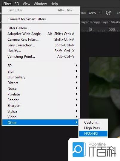 2、 转到过滤器 >> 其他 >> HSB / HSL 。