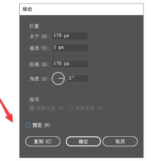 5.然后,会弹出一个“移动”对话框。设置图像移动的距离、角度和其他相关参数。单击“复制”按钮,图像将根据设置的参数保持一致;