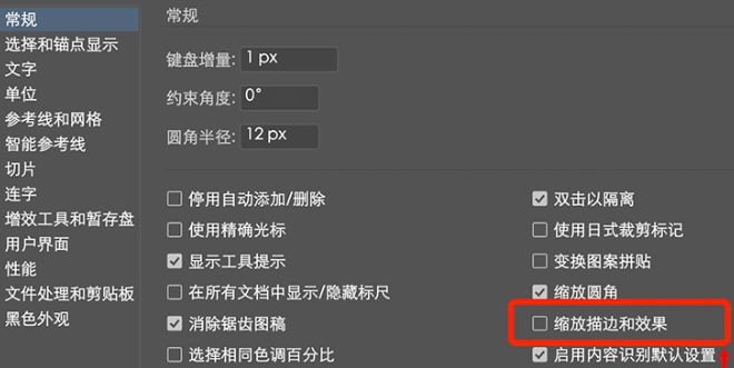 2.画布创建完成后,点击菜单栏中的编辑选项,在弹出的下拉框中点击首选项和通用,在通用界面中取消选择缩放笔画和效果选项;