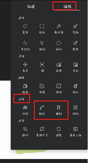 1.在 画师 画布上,我们还是画一个圆,然后打开工具栏,选择编辑菜单,使用下面的图案“缝制”工具。