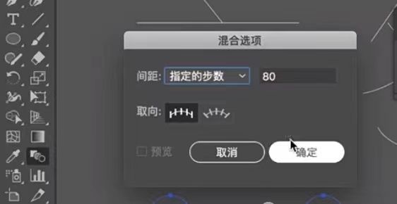 6.如果屏幕字体有比较稀疏的地方,我们需要双击混合工具,增加一些步骤数,然后单击“确定”。