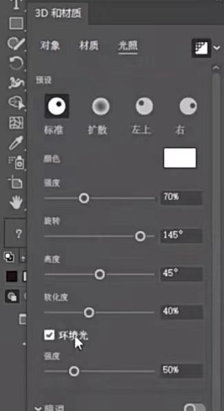 6.降低数值面板中的粗糙度,然后打开照明面板,可以选择改变照明的强度和方向,打开底部的调光开关,增加投影效果。