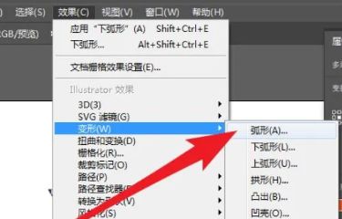 2.点击菜单栏中的“效果”选项,在弹出的下拉框中点击“变换”命令,然后变换工具的相关功能就会出现在展开的栏中,包括弧形、下弧形、上弧形、拱形、凸起、凹壳、旗帜、波浪、鱼形。