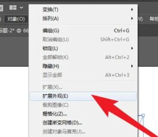 然后点击菜单栏中的“对象”选项,在弹出的下拉框中点击“扩展外观”选项,变形后的图形一定会形成新的图形。