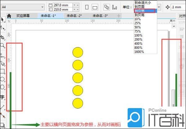 3、到页宽,主要以画板的左右两边宽度为参照进行缩放到视野可见极致范围,不会考虑上下高度是否超出视野可见范围