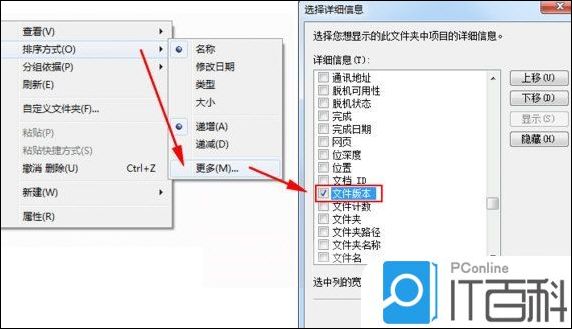 打开CorelDRAW文件夹,在文件夹空白处右键【排序方式】-【更多】-勾选【文件版本】