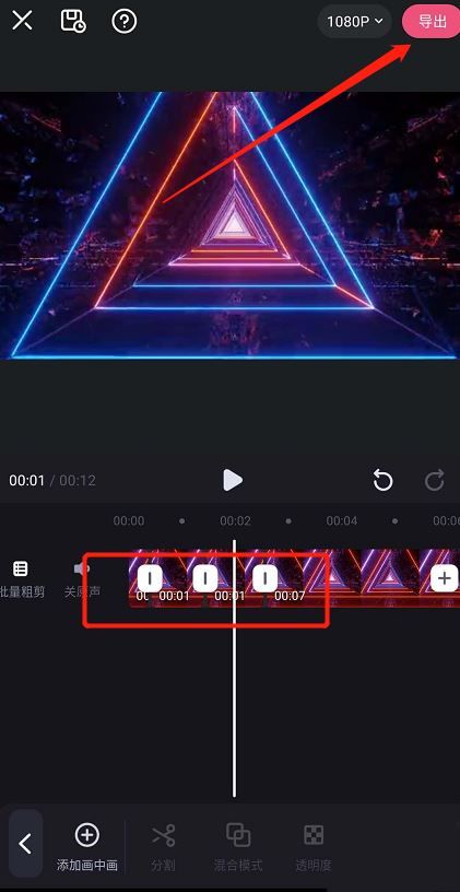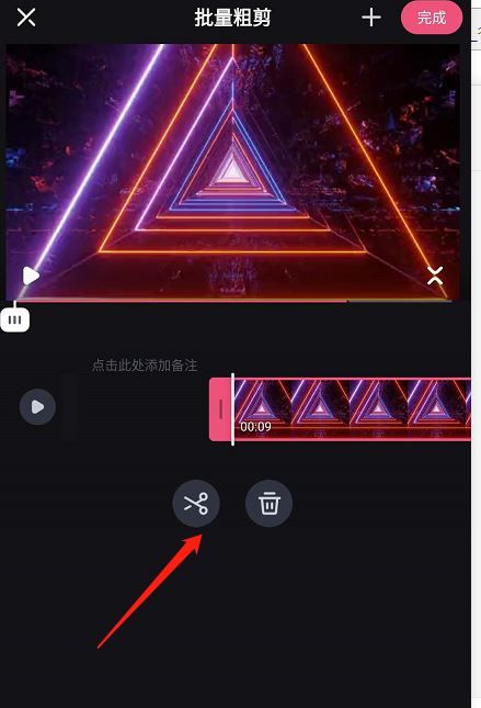 使用粗剪 工具 ,对需要剪切的视频片段切割。 分割出来的每段视频可以进行单独操作