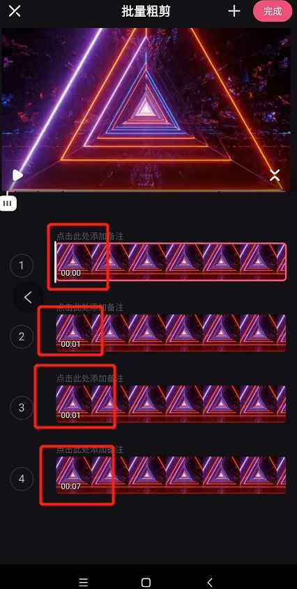 批量粗剪结束后,在整个视频上会有粗剪标记。最后根据需要合成视频