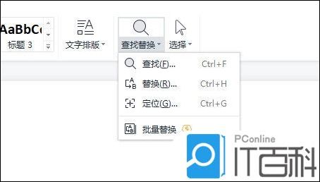 点击「开始」-「查找替换」-「替换」按钮。