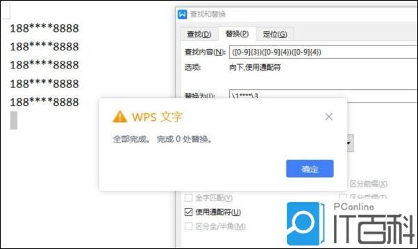 最后点击全部替换,这样手机号就被星号隐藏显示了,非常的简单。
