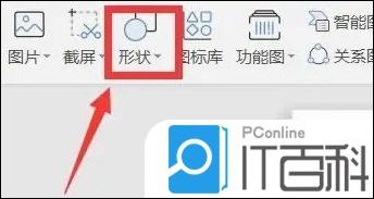 2、点击之后显示如下界面,我们在此界面上点击形状,在这里我们还可以插入图片剪贴画等丰富我们的文档