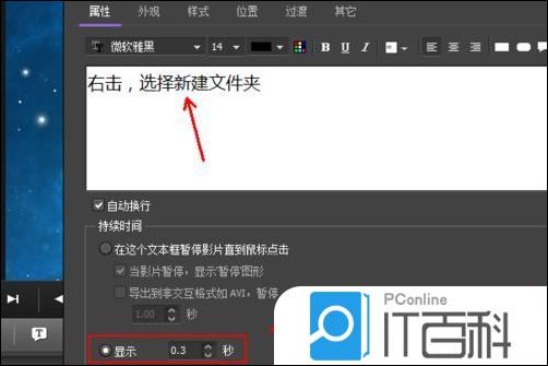 4、可能在上一步的时间控制的时候不是太准确,我们可以在底端的对象栏里面,拖动文本框改变其位置,同时将鼠标放在上面的边缘位置,当变为朝左右两个方向的箭头的时候,就可以拖动改变文本框显示的时间了