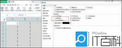 3、也可以打开选项窗口,去掉勾选“网格线”,网格线也不再显示。