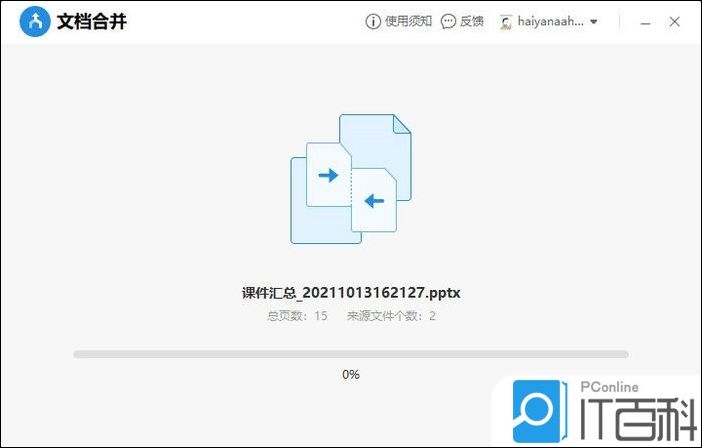 设置好输出名称以及输出的位置,点击「开始合并」按钮就开始将多个幻灯片进行合并了。
