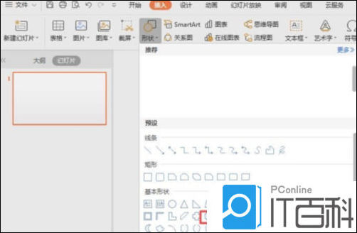 4、弹出的界面,点击缺角矩形;
