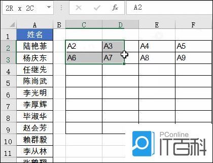 如下图所示,A列包含一些人员姓名,需要将其转换为多行多列进行打印。