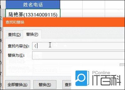 要删除括号中的电话,只留下名称,您也可以使用Ctrl+H,如下所示。