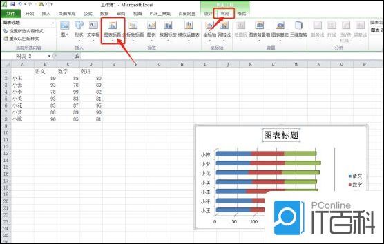 3.接下来,插入之后点击【布局】按钮,点击【图表标题】,我么可以看到就插入成功了,如下图红色圈出部分所示: