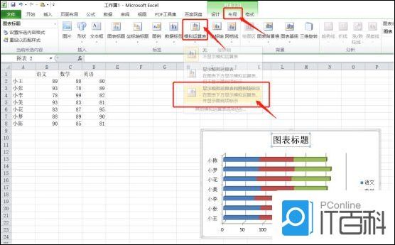 4.点击【布局】后,选择【模拟运算表】,在选择【显示模拟运算表和图例项标示】,如下图红色圈出部分所示: