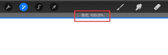 3.然后画布顶部会显示“锐化”字样,同时还会显示当前锐化的数值;