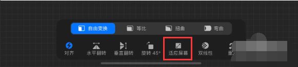 4.底部有这个工具的相关选项。点击“自由变换”工具,在其子工具中找到“适配屏幕”功能,点击;