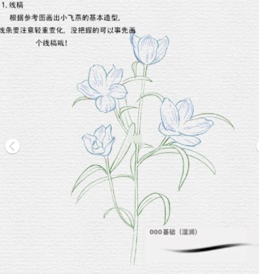 在网上找到满意的绿植图片,新建线描图层。我们根据画面的比例在画布上画一个线条画。画完大致的线条画后,我们会用相应的颜色进行描摹。注意线条的轻重变化。