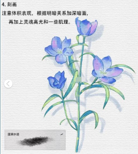 然后,我们将描绘植物的投影,雄蕊和体积关系,并在适当的位置添加一点亮点。