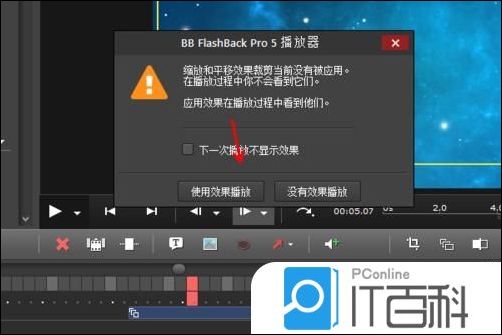 5、设置完成之后, 点击播放按钮三角 ,这时会弹出效果应用的对话框,点击使用效果播放,查看实际的播放效果
