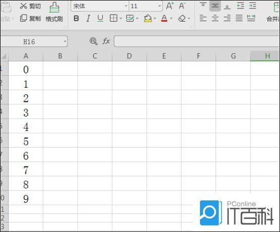 1、首先,点击桌面上的Excel表格,打开一个空白的文档,在文档第一列输入数字0到9(按需要可输入更多数字)。
