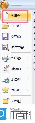 4、这样新建模板就算完成了,当需要调用时,只要打开Excel软件,然后点击上方菜单栏图标,此时会弹出下拉菜单页面,在弹出的下拉菜单页面里点击【新建】按钮。