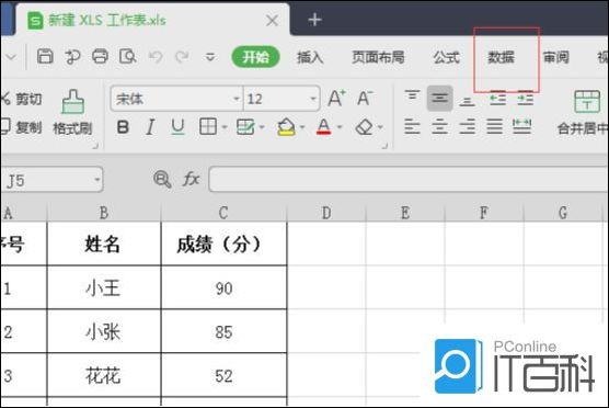 2:然后找到表格上方的【数据】,(如下图红色线框所示)。