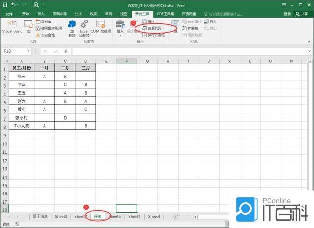 2、选中要彻底隐藏的工作表,点击开发工具中的【查看代码】;