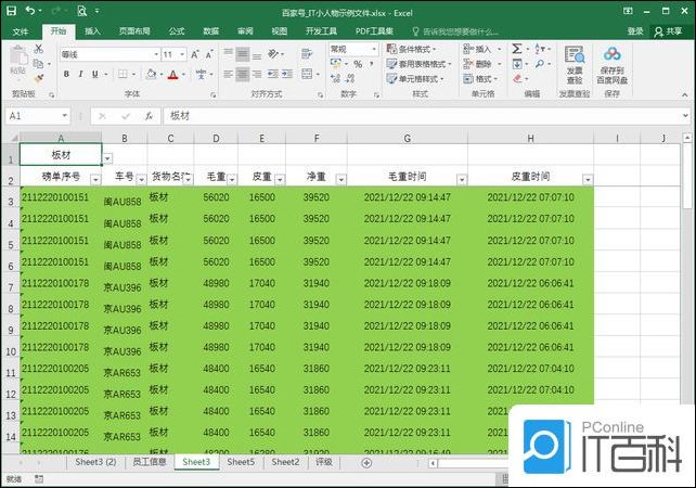 6、在下拉选项中选择,如“板材”,为板材的行就会显示颜色了。