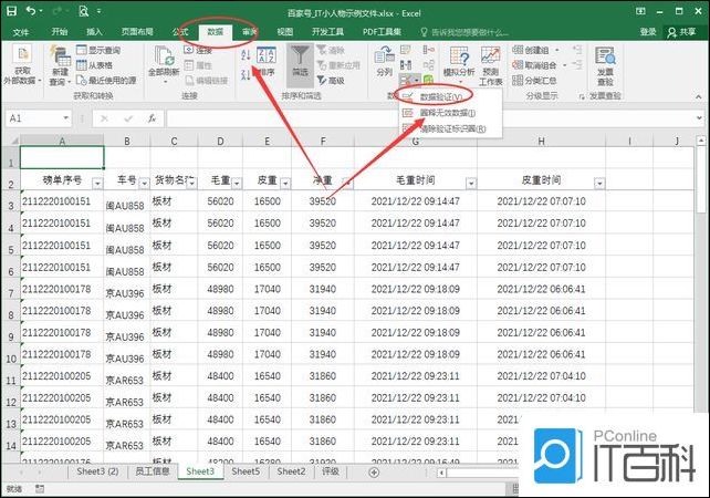 2、依次点击菜单项【数据】-【数据验证】,打开“数据验证”对话框;