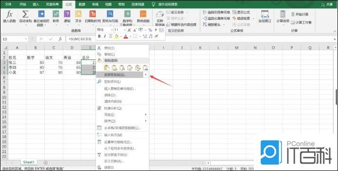 2.在被选中的状态下上面会显示公式,接着大家再选中公式计算出的结果后,鼠标右击选择复制或使用快捷键Ctrl+C进行复制数据,如图所示。