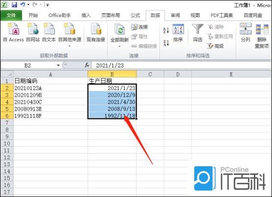 11.最后,文本格式就被转化成真正的日期格式,如下图所示: