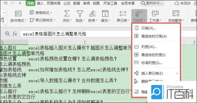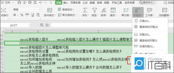2、找到“开始”栏目的“行和列”,点击一下就会看到“删除单元格”